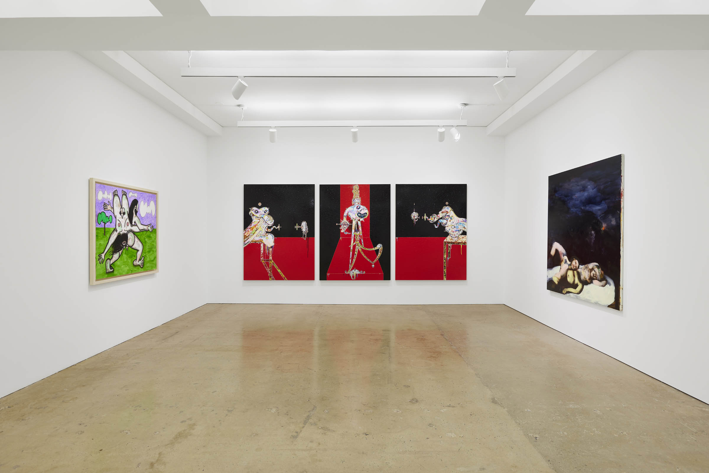 The exhibition presents works by Rita Ackermann (b. 1968), Alex Carver (b. 1984), Guglielmo Castelli (b. 1987), Sedrick Chisom (b. 1989), Theresa Chromati (b. 1992), George Condo (b. 1957), Shuriya Davis (b. 1996), Carroll Dunham (b. 1949), Nicole Eisenman (b. 1965), Jana Euler (b. 1982), Jeremy Glogan (b. 1967), Jamian Juliano- Villani (b. 1987), Karla Kaplun (b. 1993), Izumi Kato (b. 1969), Jared Madere (b. 1986), Mathieu Malouf (b. 1984), Connor Marie (b. 1992), Jannis Marwitz (b. 1985), Takashi Murakami (b. 1962), Richard Prince (b. 1949), Benjamin Reichwald (b. 1994) & Jonas Rönnberg (b. 1990), Daniel Richter (b. 1962), Peter Saul (b. 1934), Josh Smith (b. 1976), Matthew Stone (b. 1982), and Ambera Wellmann (b. 1982) that are, for us, in some way misshapen or unsightly. To say a painting is ugly is not to suggest that it is bad. “Bad painting,” Rachel Wetzler writes in an essay on Euler for Art in America, “approaches the medium as something that can only be pursued ironically, through a posture of carelessness, haste, and disregard”—whereas ugly painting is a choice and a matter of style and control. There are many bad paintings around, but few ugly ones.
